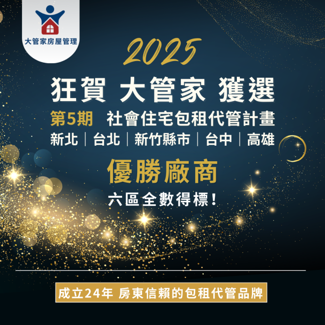 【恭賀大管家榮獲 第5期社宅包租代管優勝廠商】